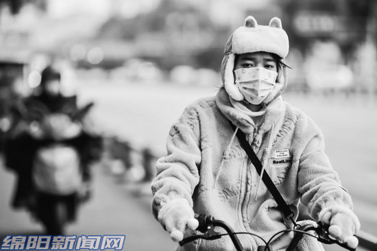 市民穿戴棉衣棉帽御寒(綿報融媒記者 王勇 攝)