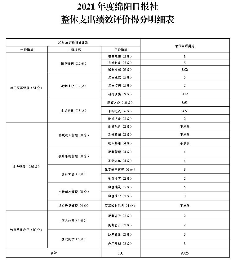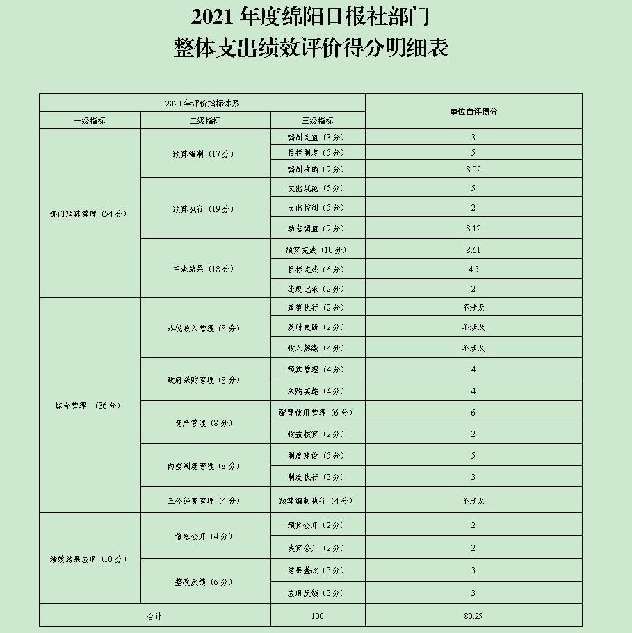 附件:2021年度綿陽日報社整體支出績效評價得分明細表
