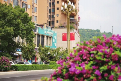 隨著國慶到來,一抹抹耀眼的“中國紅”成為平武街頭最美的色彩。 (記者 任露瀟 攝)