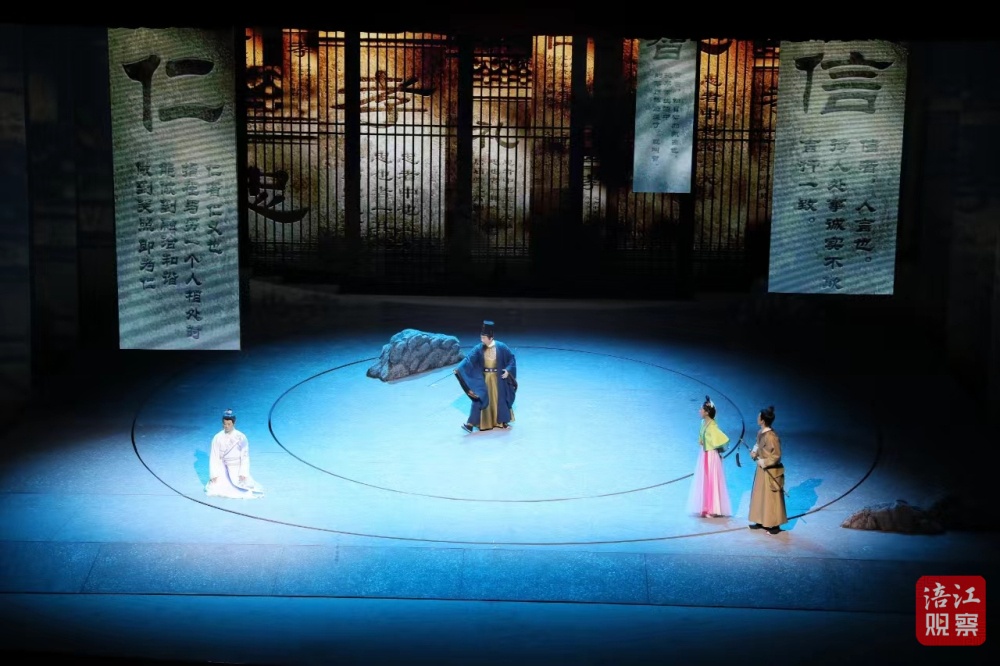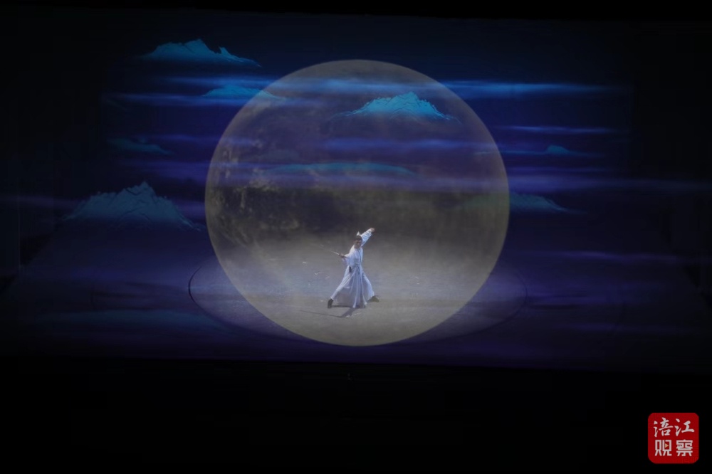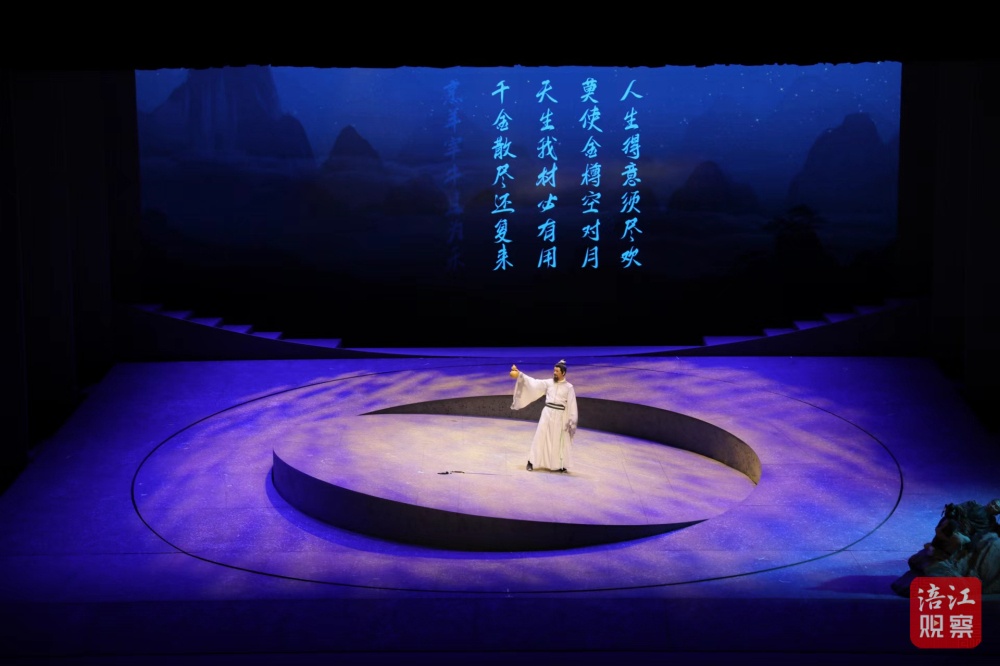 10月1日19時30分,江油大劇院舞臺,云水飄渺之中,伴隨著一段“瘋道人”的說唱,緩緩拉開了音樂劇《將進酒》駐場版的序幕。