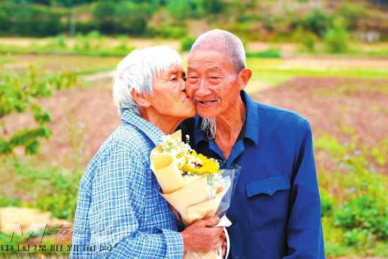 “婆婆爺爺,我幫你們整理一下衣服,拍照更精神!”記者來到百歲老人禹金安家中時,社工們正在為老人和他的妻子張庭秀老人整理衣服、梳妝打扮。“看鏡頭,茄子!”“咔嚓”一聲后,兩人幸福的笑臉定格在這一瞬間,記錄下了愛情最美的樣子。