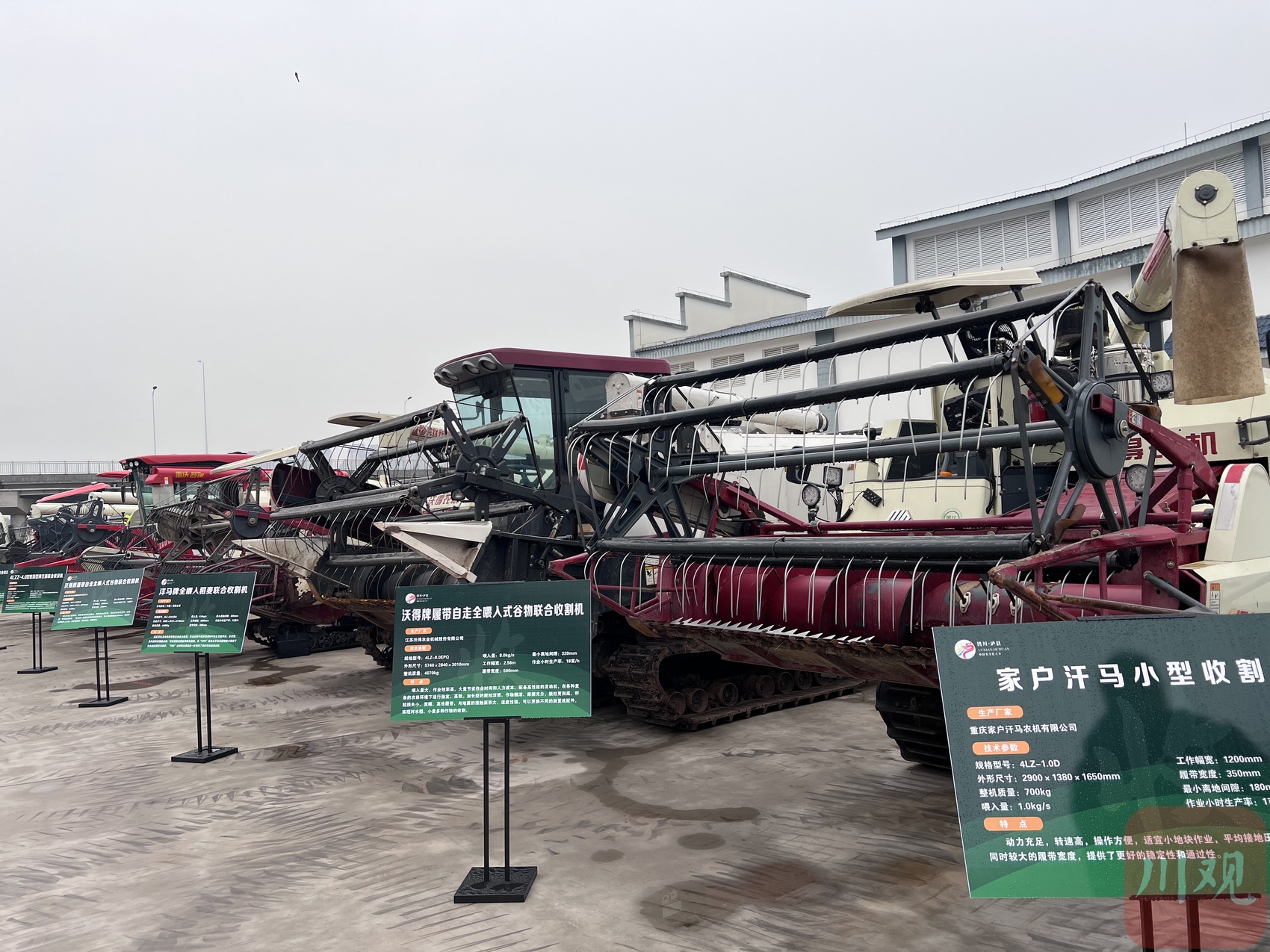 “大家看這兩臺(tái)水稻收割機(jī),最大的差別是什么?”在推進(jìn)會(huì)參觀環(huán)節(jié)的農(nóng)業(yè)機(jī)械展陳區(qū),瀘縣農(nóng)業(yè)農(nóng)村局土肥與農(nóng)機(jī)服務(wù)股負(fù)責(zé)人顏波向大家拋出了問題。