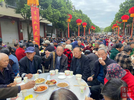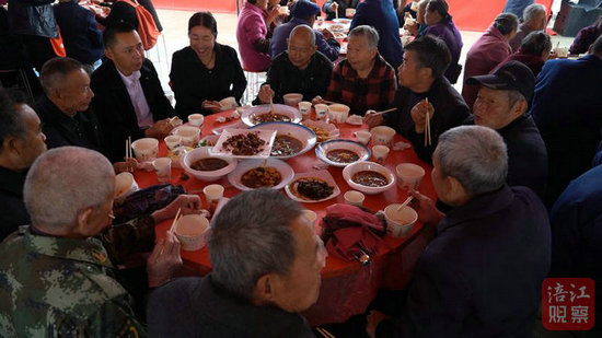 在江油市厚壩鎮文勝村,80桌壩壩宴讓全村老人共享口福。800多位老人收到了愛心商家贊助的節日禮品,并觀看了村里文藝愛好者自編自演的有趣節目。