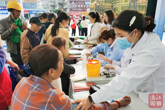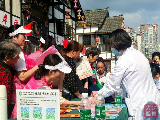 活動現場一派歡聲笑語,歌舞、雜技、川劇……舞臺上,一個個老百姓喜聞樂見的節目輪番上演;一邊的健康體檢區,免費為老年人測量血壓、健康問診。