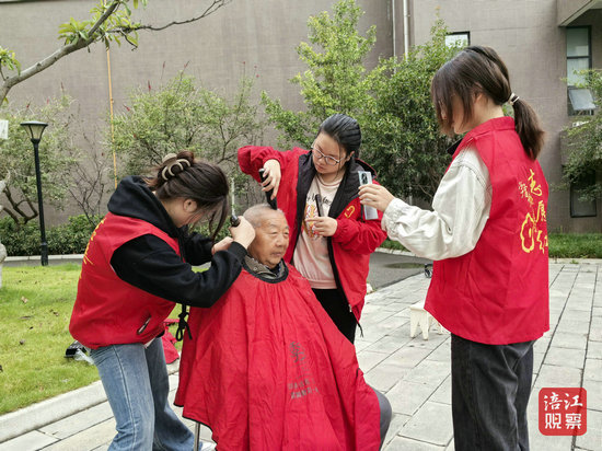 三合鎮慶興社區舉行了“情滿重陽 愛心義剪”公益活動,志愿者為社區的老人進行了免費理發。