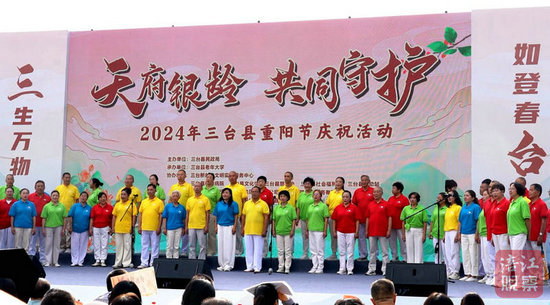 10月10日下午,以“天府銀齡 共同守護”為主題的重陽慶典在三臺縣潼川古城梓州渡廣場舉行。