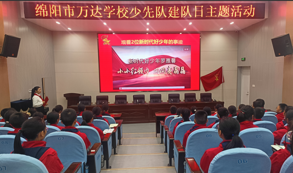 為了增強少先隊員的光榮感和組織歸屬感,引導廣大隊員熱愛祖國,爭做新時代好少年,在中國少年先鋒隊成立75周年之際,綿陽市萬達學校開展了以“紅領巾 愛祖國”為主題的建隊日主題活動。