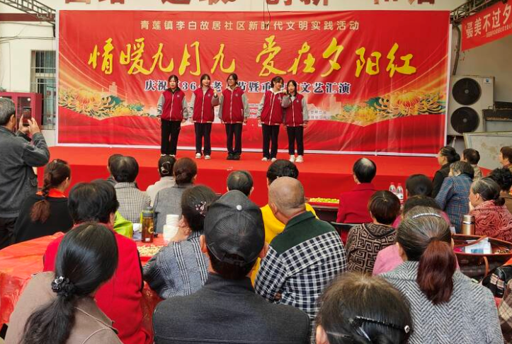 為了讓學生敬老愛老,10月11日上午,江油市青蓮初中組織學生到青蓮鎮李白社區參加2024年重陽節演出活動。