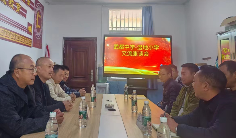接著,兩所學校開展座談會。武都初中播放了學校開展航模科技活動的視頻,分享了經驗;而后又分別向濕地小學領導班子詳細介紹了武都初中教學規劃和實施辦法、通過班團隊建設發揮學生自主管理的經驗、學校工會管理和師德師風建設經驗、如何有效結合地域文化開展德育教育等工作與管理經驗。