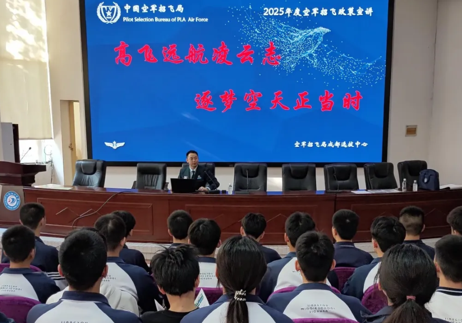 近日,江油中學召開了以“樹凌云壯志,逐空天夢想”為主題的空軍招飛宣講會。中國空軍招飛局成都選拔中心的招飛宣傳隊伍來到該校,為心懷飛天夢的江油中學學子宣講2025年度招飛政策。