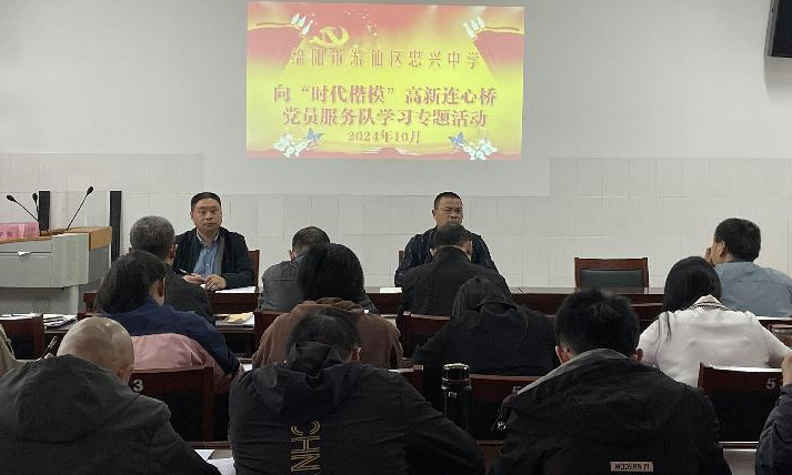 為了積極響應中共四川省委關于開展向“時代楷模”高新連心橋黨員服務隊學習活動的號召,近日,游仙區忠興中學開展了以“學習時代楷模,爭做時代先鋒”為主題的學習活動。本次活動旨在通過深入學習高新連心橋黨員服務隊的先進事跡,激勵全校黨員教師及職工樹立榜樣意識,提升服務水平,為構建和諧校園貢獻力量。