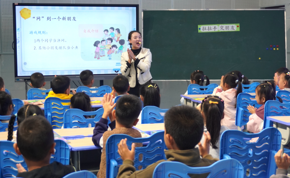 首先,由該校的廖川凌老師獻課《拉拉手,交朋友》。她用“找朋友”的破冰游戲拉近了師生間的距離, 再用“交友游戲”“友情故事分享”“角色扮演”等課堂活動讓學生主動參與,在實操中習得交朋友的方法,進一步學會表達、傾聽和共情。學生在課堂上結交朋友,感受快樂,還學著珍惜和維護與朋友的關系。