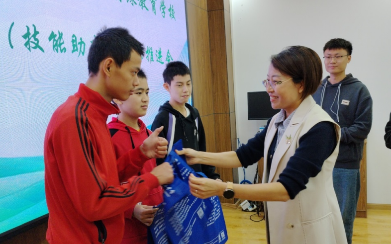 職中黨支部書記、校長梁金蓉詳細介紹了該校的發(fā)展以及專業(yè)建設(shè)和師資力量,展望了融合教育的美好前景,提出了“技能助殘”實現(xiàn)殘疾學(xué)生就業(yè)、升學(xué)的具體措施,表示愿意與特校教育深度融合,為更多同學(xué)提供學(xué)歷提升,建開放大學(xué)教學(xué)實踐基地,進一步推動現(xiàn)代職業(yè)教育的健康發(fā)展,為發(fā)展縣域經(jīng)濟和促進人才培養(yǎng)貢獻職教力量。
