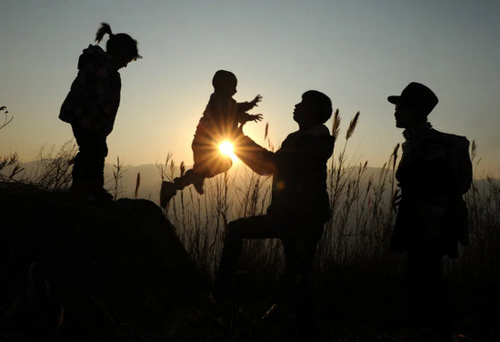 2017年2月12日,日出、沙子和孩子們?cè)谝黄稹P氯A社記者 陳燮 攝