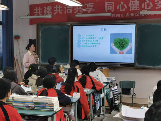 綿陽新聞網(wǎng)訊 10月15日下午,安州區(qū)塔水鎮(zhèn)初級中學(xué)邀請安州區(qū)人民醫(yī)院羅浩醫(yī)生與安州區(qū)鳴興精神病醫(yī)院蔣秀文醫(yī)生到校,為全體師生開展了以“愛護(hù)耳朵,保護(hù)聽力”和“培養(yǎng)積極心態(tài),創(chuàng)建美好人生”為主題的2024年秋心理健康專題講座。本次講座以9。1班教室為主會場,其余班級則通過視頻直播的形式同享這份知識與關(guān)愛。