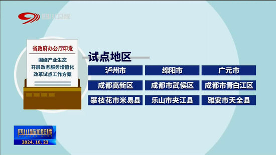 《方案》明確,試點(diǎn)地區(qū)有瀘州市、綿陽(yáng)市、廣元市,以及成都高新區(qū)、成都市武侯區(qū)、成都市青白江區(qū)、攀枝花市米易縣、樂(lè)山市夾江縣、雅安市天全縣,還包括成都天府國(guó)際生物城、自貢航空產(chǎn)業(yè)園等13個(gè)產(chǎn)業(yè)園區(qū)。《方案》要求,各試點(diǎn)地區(qū)要圍繞服務(wù)六大優(yōu)勢(shì)產(chǎn)業(yè)提質(zhì)倍增計(jì)劃,做好編制涉企服務(wù)事項(xiàng)清單、搭建線下綜合服務(wù)載體、打造網(wǎng)上服務(wù)平臺(tái)體系、完善服務(wù)機(jī)制四項(xiàng)試點(diǎn)任務(wù)。到2026年,建立跨領(lǐng)域跨地區(qū)涉企服務(wù)協(xié)作機(jī)制,促進(jìn)行業(yè)、區(qū)域間業(yè)務(wù)鏈接和發(fā)展協(xié)同,壯大產(chǎn)業(yè)發(fā)展“生態(tài)圈”,實(shí)現(xiàn)優(yōu)勢(shì)互補(bǔ)、共贏發(fā)展,推動(dòng)構(gòu)建較為成熟的產(chǎn)業(yè)生態(tài)服務(wù)體系。