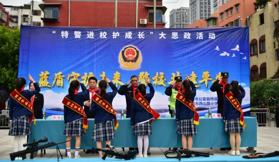 為了厚植愛國主義情懷,全面深入貫徹加強未成年人思想道德建設,進一步增強廣大師生的安全防范意識,提高應對突發事件和自我保護的能力,有力推進平安校園建設,10月29日上午,綿陽市西山路小學攜手綿陽市特巡警支隊,開展了以“藍盾守護未來 警校共建平安”為主題的2024年秋特警進校護成長大思政活動。