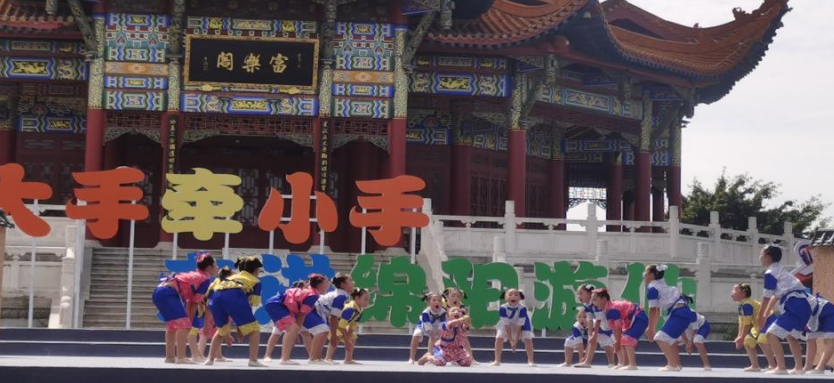 近日,游仙區石馬小學舞蹈《圍龍屋下》參加了中央電視臺少兒頻道《大手牽小手——走進綿陽游仙》專題節目錄制,這是一期反映游仙教育的專場節目,中央電視臺鞠萍姐姐、芝麻、黃煒、陳怡等著名主持人親臨現場主持節目。