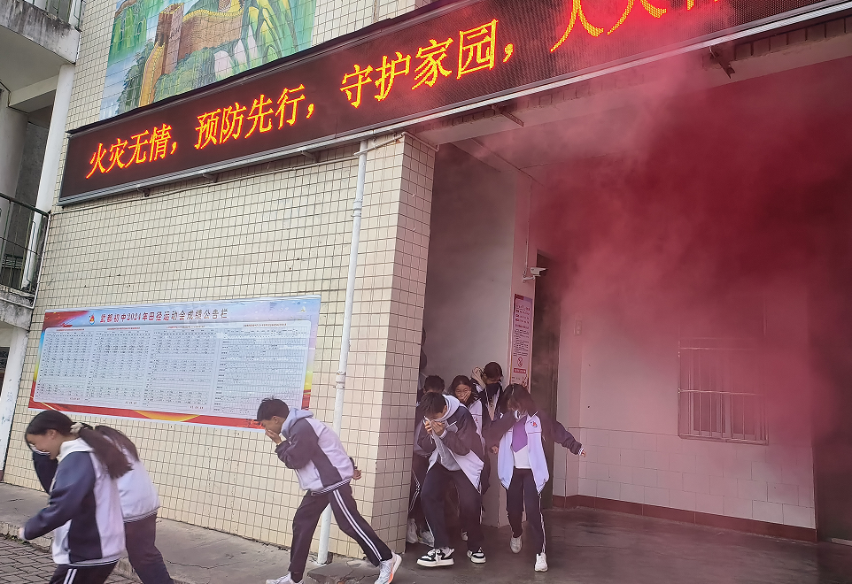 為了切實提高學生消防安全防范意識和緊急避險自救能力,保障學生平安、健康成長,營造平安、文明、和諧的校園育人環境。11月4日,江油市武都初級中學聯合武都消防應急救援站開展了以“消防演練常進行 危難時刻護生命”為主題的2024年秋校園消防應急疏散演練活動。