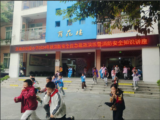 綿陽新聞網訊 為了切實樹立起消防意識,讓學校廣大師生深入地了解消防逃生常識,提高全體師生的安全疏散意識及對突發事件的靈活應變能力,真正掌握好消防安全知識,能有組織、迅速地引導學生安全快速地疏散撤離,切實保障師生生命安全。11月6日上午9:30分,江油市花園小學開展了以“以演筑‘防’ 防范未‘燃’”為主題的2024年秋消防安全疏散演練暨消防安全知識講座活動。