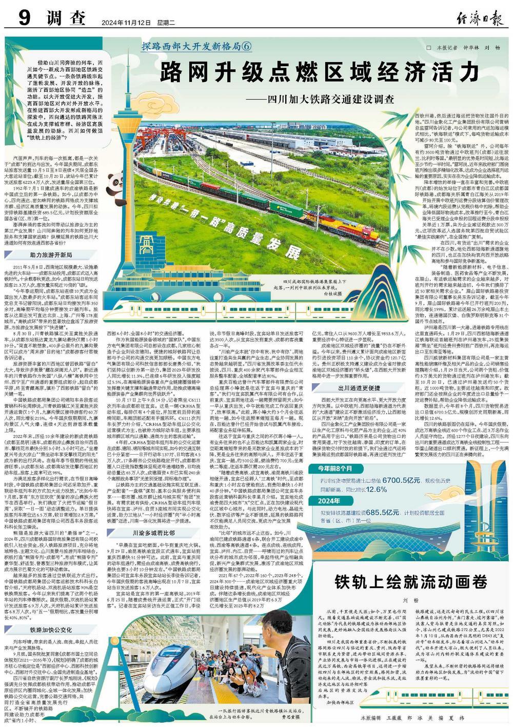 借助山川間奔馳的列車,四川如今一躍成為西部地區鐵路交通關鍵節點。一條條鐵路線串起了蓬勃發展、開發開放的脈絡,激活了西部地區協同“造血”的功能。以大開放促進大開發,提高西部地區對內對外開放水平。在推進西部大開發形成新格局的探索中,四向通達的鐵路網絡正在成為支撐城市群、經濟區高質量發展的動脈。四川如何做強“鐵軌上的經濟”?