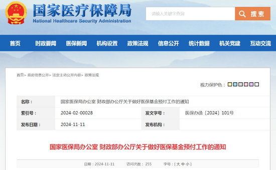 11月11日,兩部門聯合發布《國家醫保局辦公室 財政部辦公廳關于做好醫保基金預付工作的通知》,在國家層面統一和完善基本醫療保險基金預付制度,提高資金使用效率,為定點醫療機構可持續發展賦能助力。