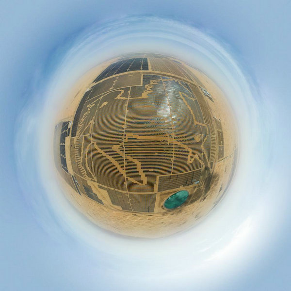 這是4月21日在達拉特光伏發電應用領跑基地拍攝的“駿馬電站”(無人機全景照片)。新華社記者 劉磊 攝