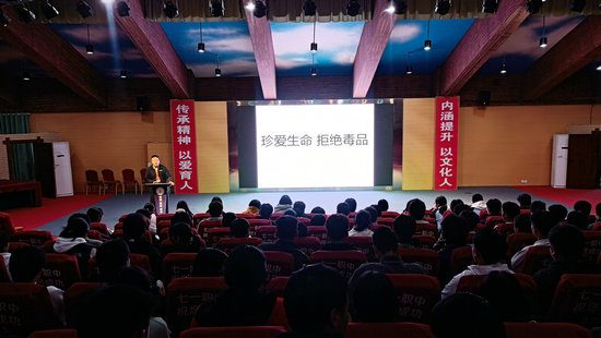 活動開始,安全辦主任彭沖利用PPT詳細地向在場師生介紹了當前社會上常見的毒品種類及其特性,從科學的角度剖析了毒品對人體健康的嚴重危害?,F場還播放了幾段關于毒品危害的真實案例視頻,這些視頻以鮮活的事例展現了毒品如何一步步摧毀個人的生活、家庭乃至整個社會,給在場的每一位師生帶來了極大的震撼和深刻的警示。
