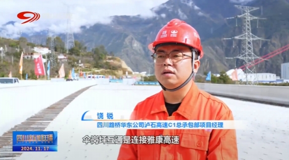 四川路橋華東公司瀘石高速C1總承包部項目經理 饒銳:傘崗坪互通是連接雅康高速和瀘石高速的一個樞紐互通,整個項目施工難度相當大,目前,已達到90%的施工進度,預計在明年4月份左右建設完成。