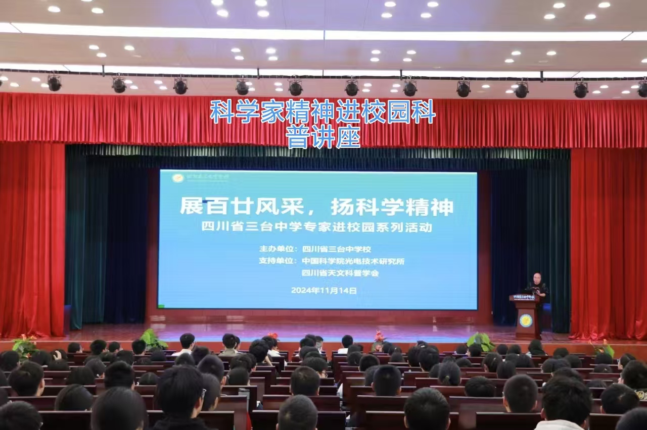 為了培養(yǎng)師生的實(shí)踐能力和創(chuàng)新精神,為科技創(chuàng)新人才培養(yǎng)賦能,近日,三臺(tái)中學(xué)開展了以“展百廿臺(tái)中風(fēng)采 揚(yáng)科學(xué)精神風(fēng)帆”為主題的2024年第21屆科技文化藝體節(jié)之天文科普講座活動(dòng)。中國(guó)科學(xué)院光電技術(shù)研究所科學(xué)傳播領(lǐng)導(dǎo)小組辦公室副主任陳勇和四川省天文科普學(xué)會(huì)副會(huì)長(zhǎng)張春來出席,全校師生200余人參加活動(dòng)。
