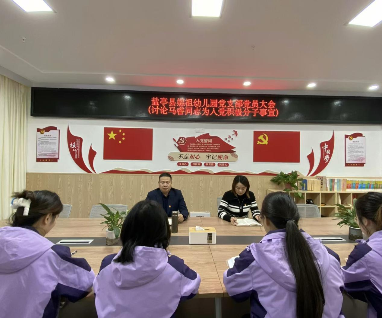 11月12日,鹽亭縣嫘祖幼兒園黨支部在學(xué)校黨建室召開(kāi)了2024年秋黨員會(huì)議,全體黨員和工會(huì)主席齊聚一堂,共同討論馬睿同志為入黨積極分子的相關(guān)事宜。