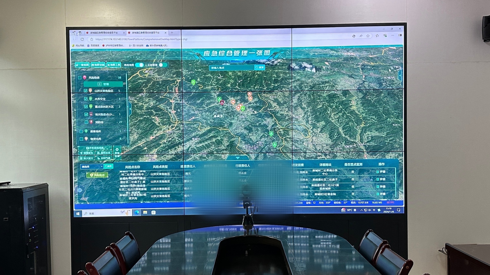 在瀘州市敘永縣麻城鎮的應急管理辦公室,各類風險點位和相應責任人在指揮大屏上一目了然。