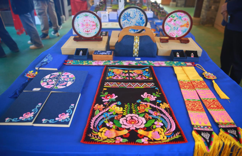 綿陽市北川羌族自治縣曲山鎮(zhèn)石椅村羌繡產品。新華網發(fā)(精神文明報 袁矛 攝)