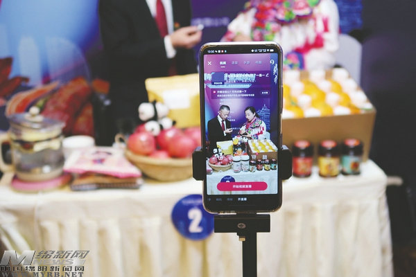 參賽主播講解綿陽(yáng)特產(chǎn)賣(mài)點(diǎn)
