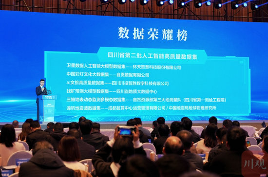 大會公布了四川第二批6個人工智能高質量數據集,既有諦聽地震波數據集,還有衛星數據人工智能大模型數據集、中國彩燈文化大數據集、AI文旅高質量數據集、找礦預測大模型數據集、三維地表動態監測多模態數據集。
