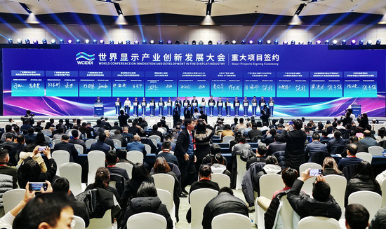世界顯示產(chǎn)業(yè)創(chuàng)新發(fā)展大會(huì)重大項(xiàng)目簽約儀式現(xiàn)場(chǎng)。華小峰 攝