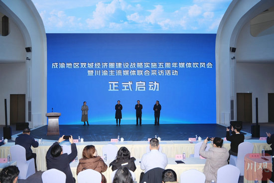 當天,川渝主流媒體聯合采訪活動正式啟動。接下來,中央媒體、川渝兩地主流媒體共21家新聞單位,將深入四川成都、眉山、德陽、廣安以及重慶銅梁、永川、萬州等地深入采訪,呈現川渝兩地共促產業科技發展、共同建設統一市場、協同推進對外開放、深化生態環境共治、推動社會共建共融等方面的有益經驗、有效做法。
