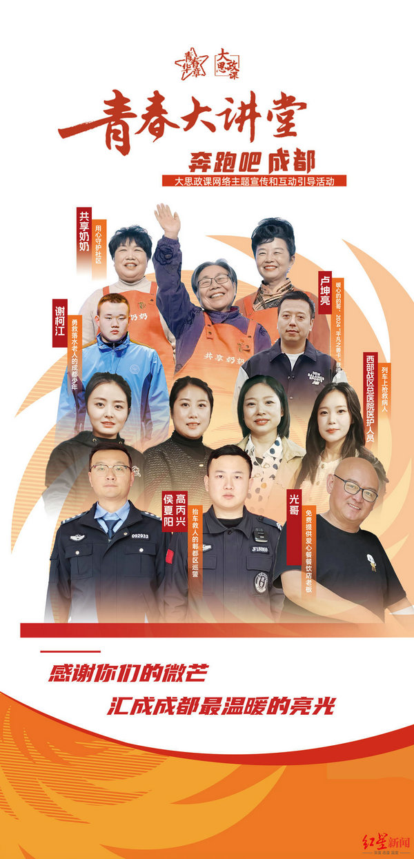 12月27日,“青春大講堂·奔跑吧成都”大思政課網絡主題宣傳和互動引導活動將在成都舉行,活動邀請來自航空航天、產業園區、科技創新、鄉村振興、運動賽事、文化傳承等領域的青春榜樣,從他們為夢奔跑的故事出發,串聯起成都2024年度向前奔跑、向上生長的城市發展脈絡,同時向廣大青少年傳遞“拼搏奮進、創新創造、追求卓越、開放包容、溫暖友善”的精神。