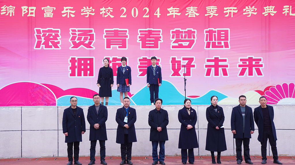 玉兔辭舊歲,金龍迎春來。為了營造濃厚的開學氣氛,增強師生責任感和使命感,激勵全校師生振奮精神、銳意進取,以良好的精神風貌投入到新學期的工作和學習。2月26日,綿陽富樂學校在中學部舉行了以“滾燙青春理想 擁抱美好未來”為主題的2024年春季學期開學典禮。中學部全體師生齊聚綠茵場,迎接新學期的到來。典禮由高一(5)班竇艾妮,初二(18)班熊衛家共同主持。