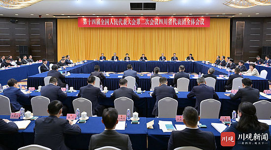 3月3日下午,在北京出席十四屆全國人大二次會議的四川代表團在駐地舉行全體會議。省委書記、省人大常委會主任王曉暉主持會議并講話。