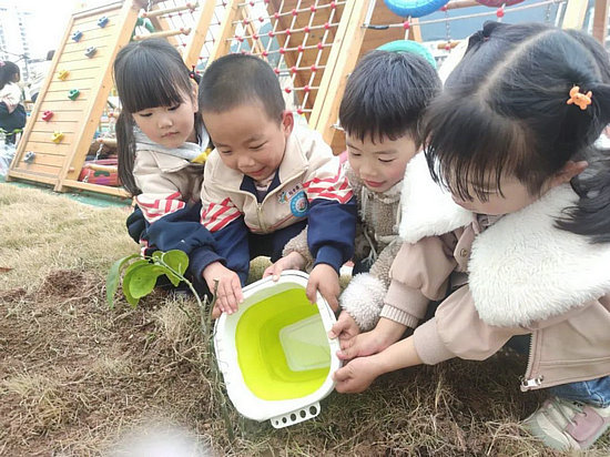 為培養孩子熱愛大自然的環保意識,提高孩子的動手能力,該園倡導孩子們利用在家親子共讀關于樹和環保的繪本故事,在家開展親子種植活動。