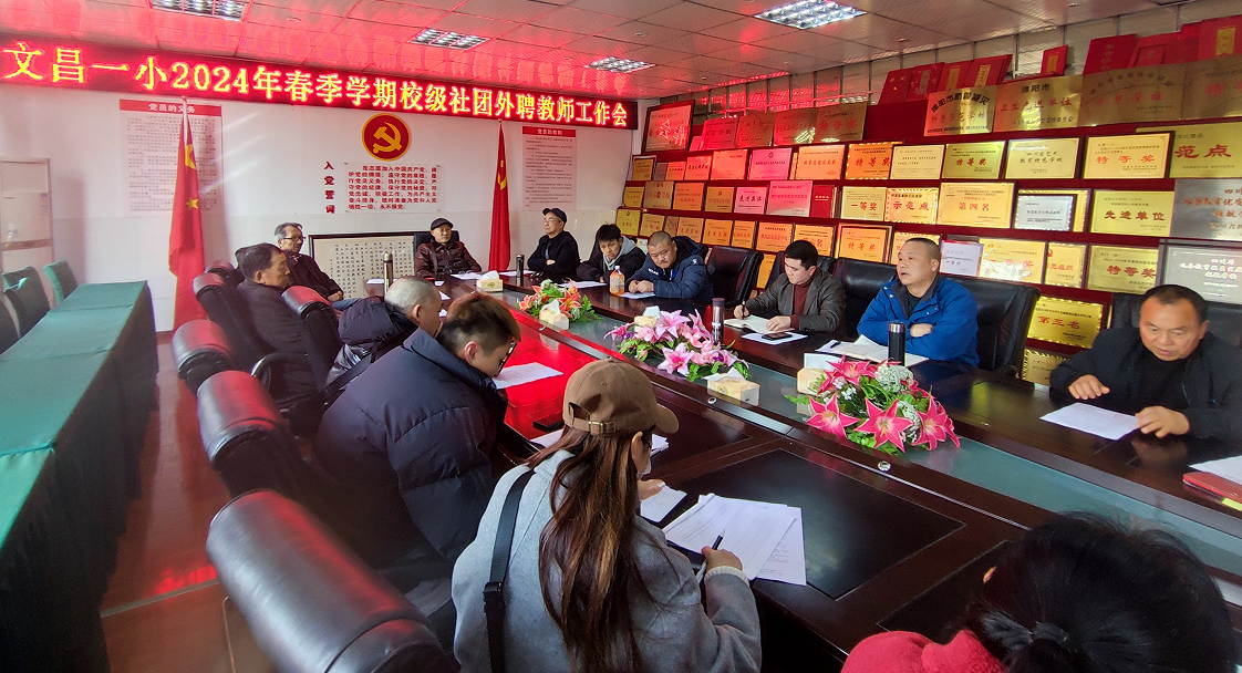 近日,梓潼縣文昌第一小學(xué)校在學(xué)校崇文樓二樓會(huì)議室召開了2024年春季學(xué)期校級(jí)社團(tuán)外聘教師會(huì)議,全體校級(jí)社團(tuán)外聘教師參加會(huì)議。