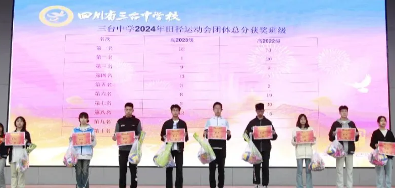 為了進一步加強學校體育工作,推動青少年文化學習和體育鍛煉協調發展,4月9日,三臺中學召開了以“汗水揮灑青春 拼搏成就夢想”為主題的2024年田徑運動會表彰總結大會,表彰了運動會中涌現的先進個人、優秀團體和風采班級。