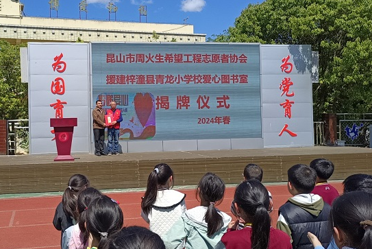 4月10日上午,昆山市周火生希望工程志愿者協(xié)會(huì)援建梓潼縣青龍小學(xué)校愛(ài)心圖書(shū)室揭牌儀式在青龍小學(xué)隆重舉行。