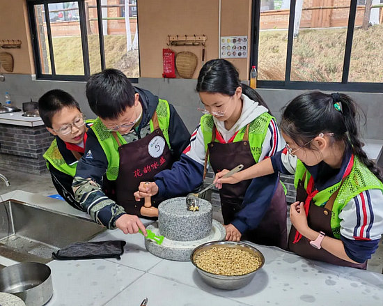 此次研學活動中,學生們相繼開展了制作古法豆腐、制作玉米饅頭、制作桂花糕、制作花傘、制作微景觀五項活動,讓學生們在研學中體驗勞動,快樂學習。