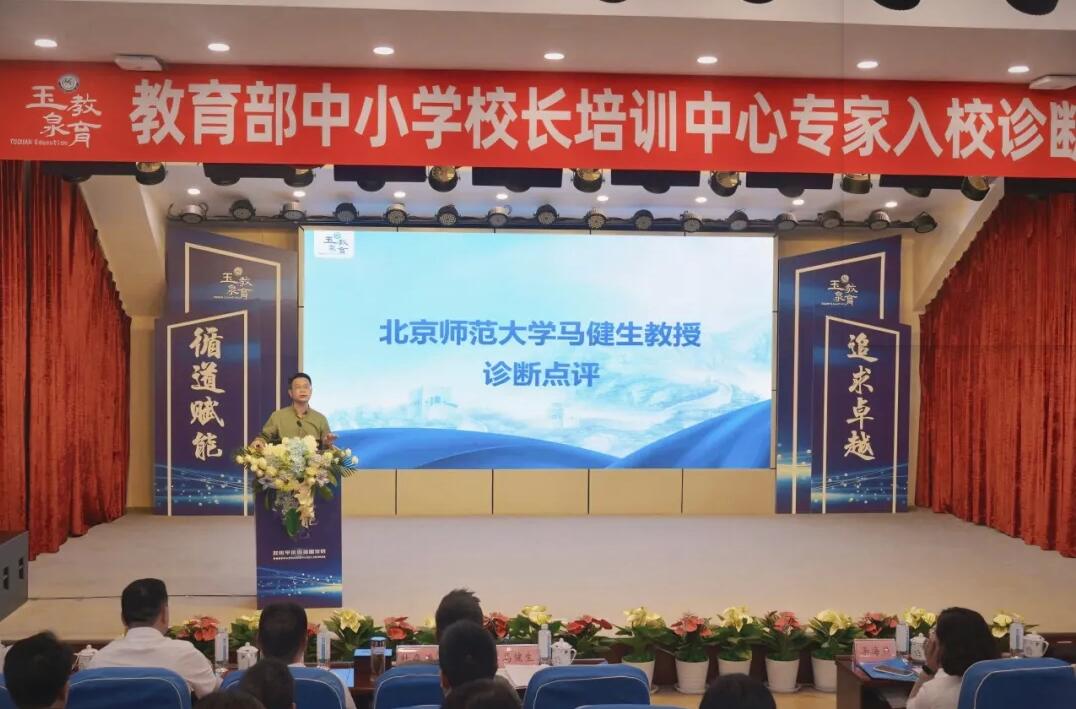 在該校體系建設匯報現場,馬健生教授回應了該校提出的辦學體系建設疑問,建議該校充分利用地域特色和資源優勢,進一步豐富學校以“德如美玉,智若靈泉”為核心構筑的教育價值和理念。在“青年教師培養的路徑”現場討論和交流環節,馬教授指出,青年教師是飽含教育激情的群體,學校管理者要全方面激發他們的內驅力,多形式、多渠道挖掘有用的培訓資源,利用好本校老教師的示范引領作用,并進行了現場答疑互動。