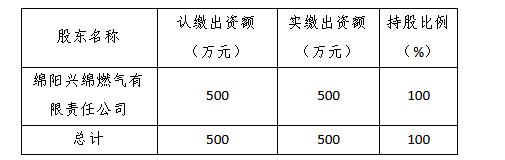 綿陽能投置業有限公司為國有全資公司。其中,綿陽興綿燃氣有限責任公司(以下簡稱“興綿燃氣公司”)持有的國有股權比例占公司總股本的100%,具體股權結構如下表所示: