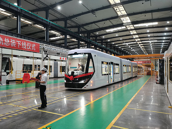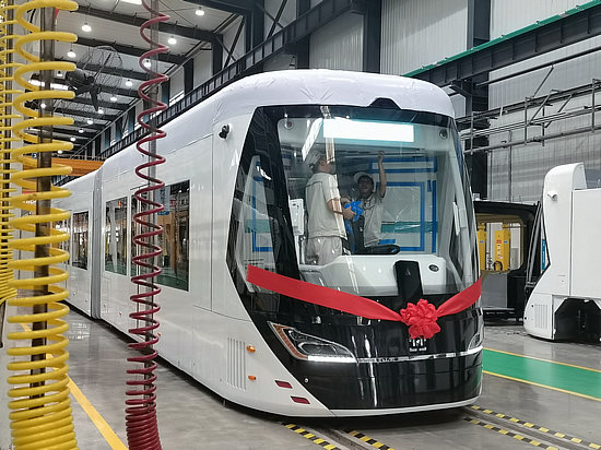 7月1日,位于宜賓三江新區的中車鐵投公司智軌產業基地內,隨著一聲汽笛轟鳴,國內首列氫能源智軌電車正式裝配下線。這輛電車將于今年8月在宜賓主城區至南溪區的智軌T4線投入使用。