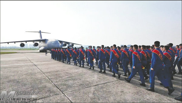8月2日上午,成都,2024年新錄取飛行學員登上運-20,前往軍旅生涯的第一站——空軍航空大學。其中,不少新學員來自綿陽。