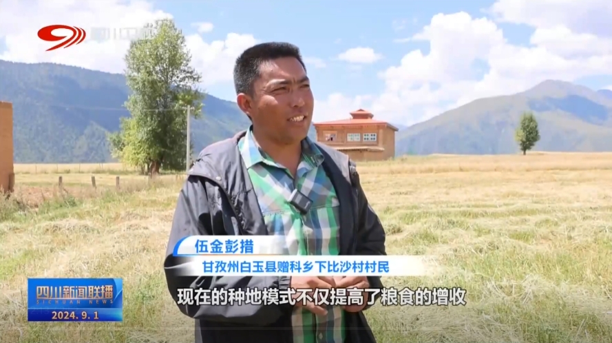 甘孜州白玉縣贈科鄉(xiāng)下比沙村村民 伍金彭措:現(xiàn)在的種地模式,不僅提高了糧食的增收,還有效解決了人力問題,機器也收割成為了常態(tài),這樣家庭中的其他成員能夠外出務工,增加了我們的收入來源。